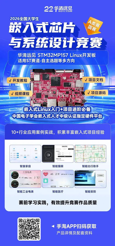 未来,华清远见将继续依托优质的硬件平台、完善的配套资源,为全国大学生嵌入式芯片与系统设计竞赛的参赛学子提供全方位支持,助力更多参赛队伍打造兼具创新性、实用性与工程性的优秀作品。同时,华清远见也将持续深耕嵌入式人才培养领域,紧跟行业技术发展趋势,不断优化硬件产品与教学资源,推动嵌入式教育与行业需求的深度融合,为嵌入式产业输送更多高素质、实战型的专业人才,助力行业技术创新与高质量发展。