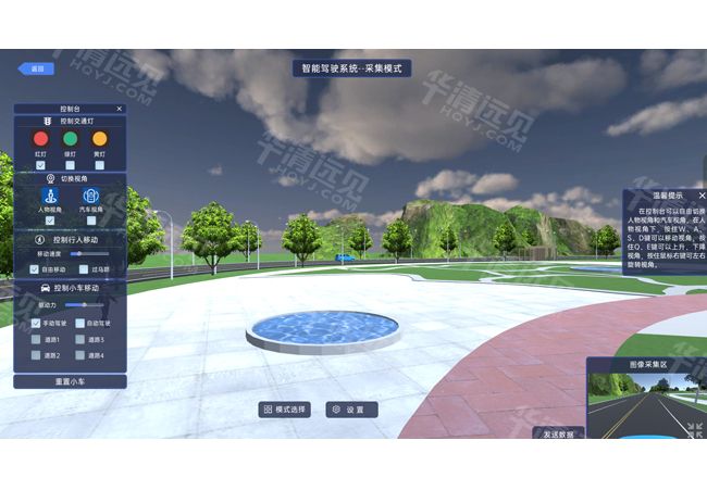4.成果验证:在 3D 虚拟交通场景中模拟车辆行驶(支持切换人物视角 / 汽车视角,按 W/A/S/D 键移动视角),查看系统对违章闯灯、超速、车道流量的监测效果,生成设备运行报表与交通数据统计报告,符合行业项目交付标准。