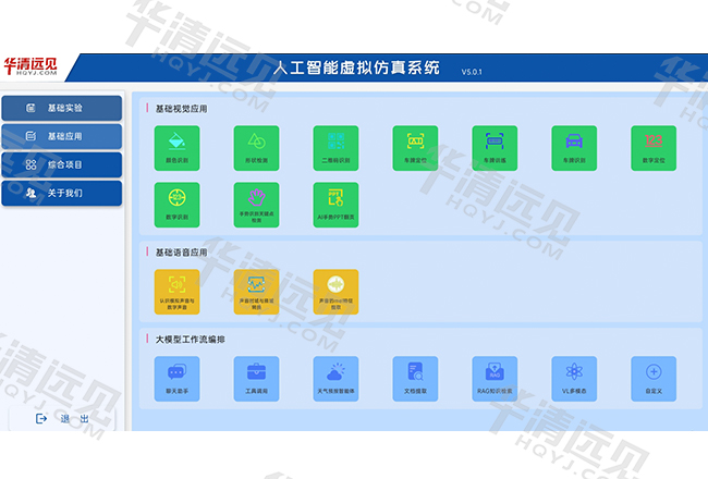 理论教学部分依托人工智能虚拟仿真教学子系统,将机器视觉、机器学习、深度学习基础、NLP - 循环神经网络、CV-NLP-Transformer、大模型工作流编排逻辑、知识库构建原理及智能对话综合项目场景(如对话意图识别、上下文理解)等抽象 AI 与 NLP 知识,通过具象化解析、可视化教学、交互式参数设置等方式具象呈现。学生可直观掌握 WordEmbedding 词嵌入原理、Transformer 注意力机制在对话中的应用、大模型 Agent 工具调用逻辑,搭配动态代码生成功能查看对话相关 Python 代码,实现从抽象概念到具象认知的高效学习。